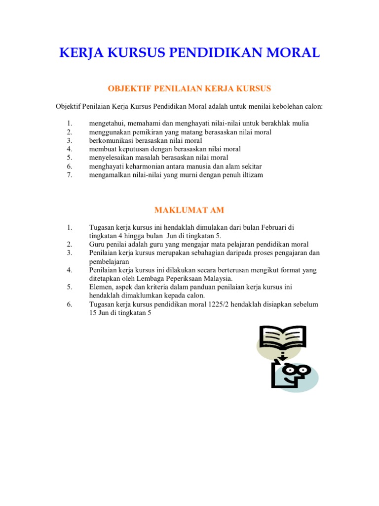 Doc Kerja Kursus Pendidikan Moral Objektif Penilaian Kerja Kursus Conan Sim Academia Edu