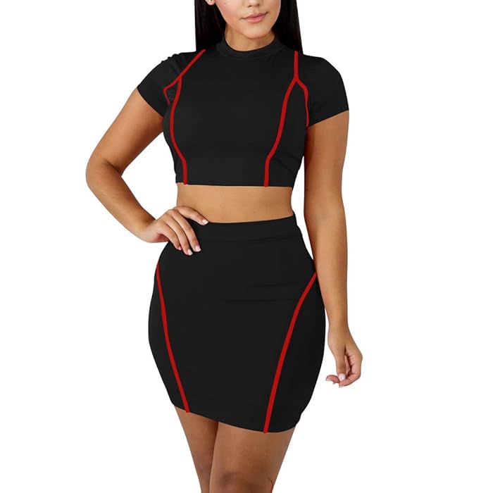 Buy Women S Sexy 2 Piece Crop Top Mini Skirt Set Short Sleeve Bodycon Club Dress Online At Desertcart India